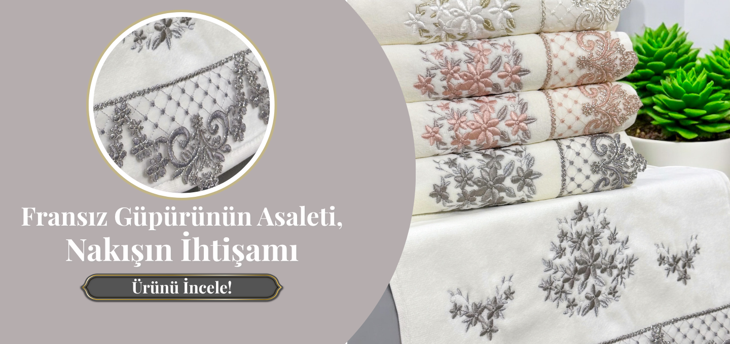 50 X 90 Etamın Bordurlu Kadıfe Jakarlı Sacaklı 12'lı Havlu