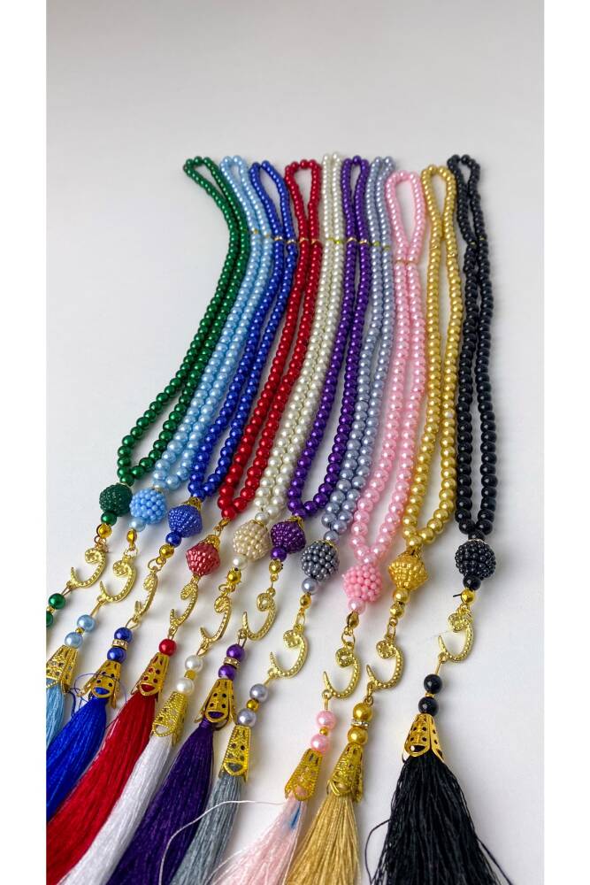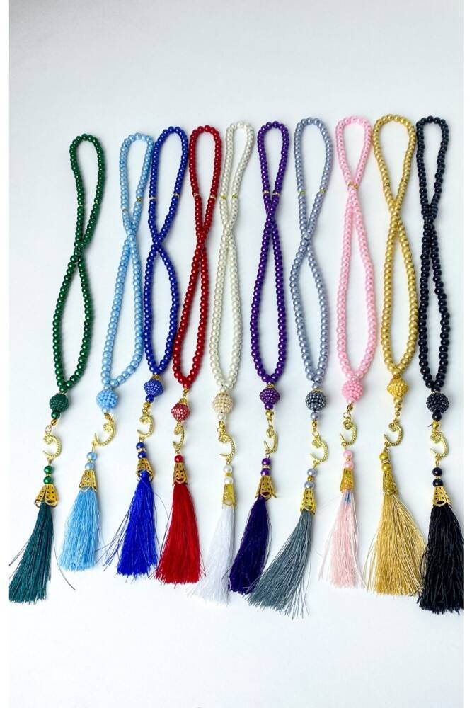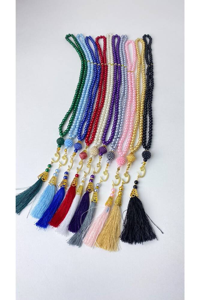 Renkli desenleriyle göz alıcı bir görünüm sunan 10 adet 99'luk inci tesbih, her kullanımda şıklığınızı tamamlar