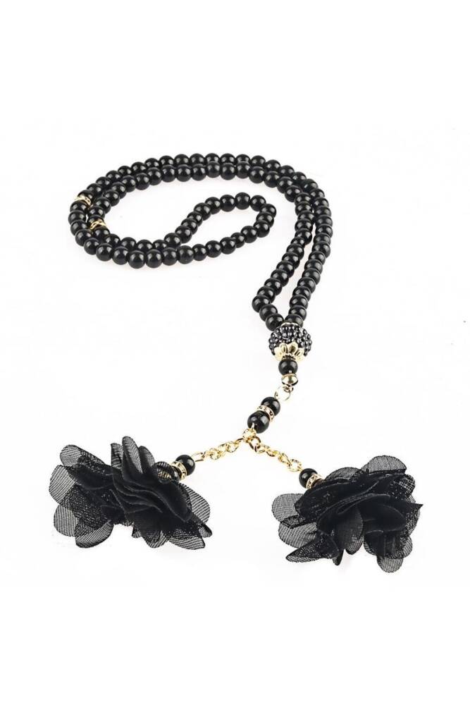 Gül püskülü detayları ile zenginleştirilmiş bu tesbih, göz alıcı bir görünüm kazandırırken aynı zamanda zarif bir dokunuş sağlar