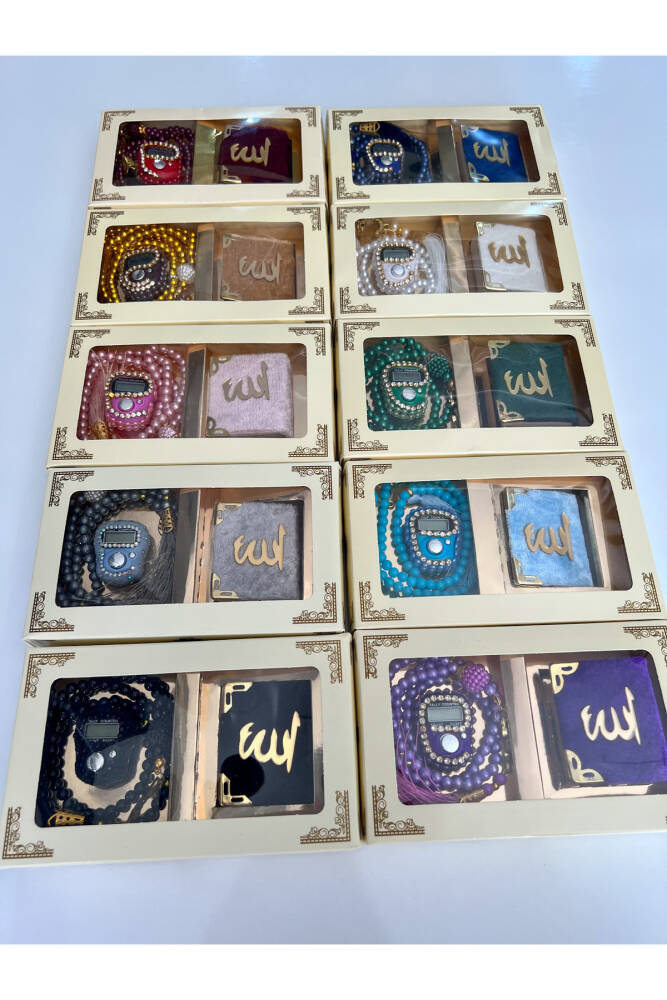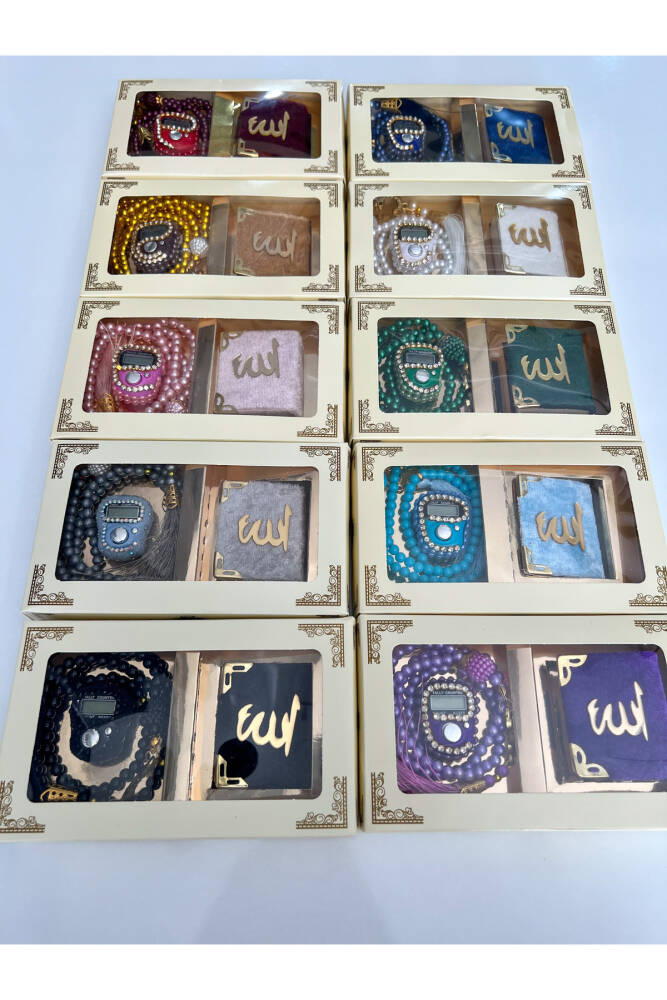 Bebek hediyesi olarak özel olarak tasarlanmış, minik eller için ideal boyutlarda mini Kur'anı KerimTesbih seti ile birlikte gelen taşlı zikirmatik, bebeğinizin manevi değerleri öğrenmesine yardımcı olurken aynı zamanda şık bir aksesuar olarak da kullanılabilirKutulu set halinde sunulan bu ürün, hem estetik hem de işlevsel bir hediye seçeneği olarak öne çıkar10 adet hediyelik çeyizlik set, yeni doğan bebeklerin çeyiz hazırlıklarını tamamlayacak zarif bir dokunuş sağlarÜrün Ölçüleri: Ürün Rengi:
