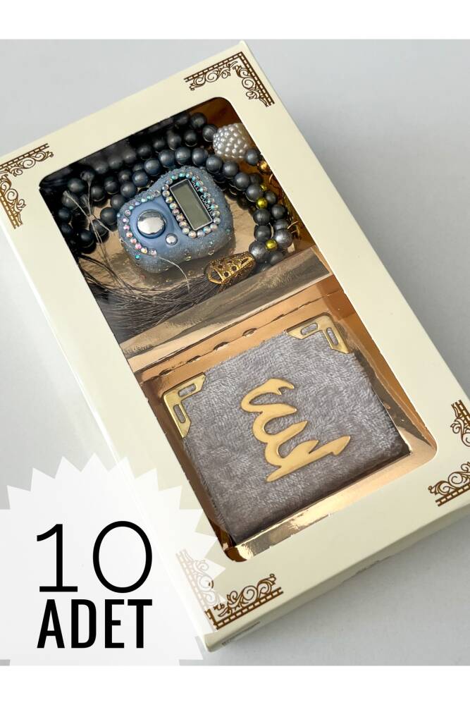 10 Adet Hediyelik Çeyizlik Kutulu Mini Kur'an-ı Kerim Tesbih Ve Taşlı Zikirmatik Setimiz ()