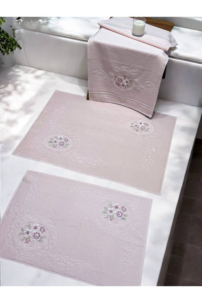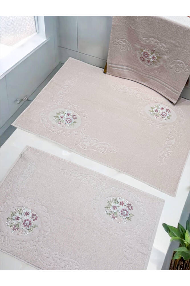 AYHANHOME 3d Nakış İşlemeli 3'lü Paspas Takımı %100 pamuklu 1 adet 60x100 paspas %100 pamuklu 1adet 50x70 ayak havlusu %100 pamuklu 1adet 50x90 el havlusu