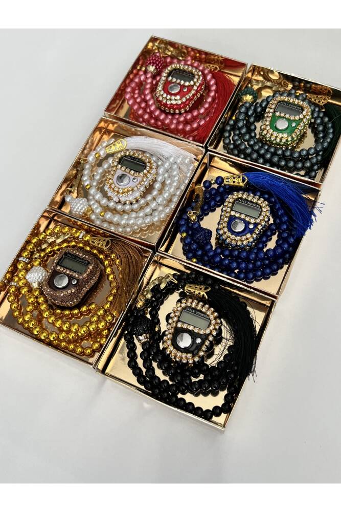 6 Adet Hediyelik mevlidlik dağıtmalık özel kutulu taşlı zikirmatik setimiz