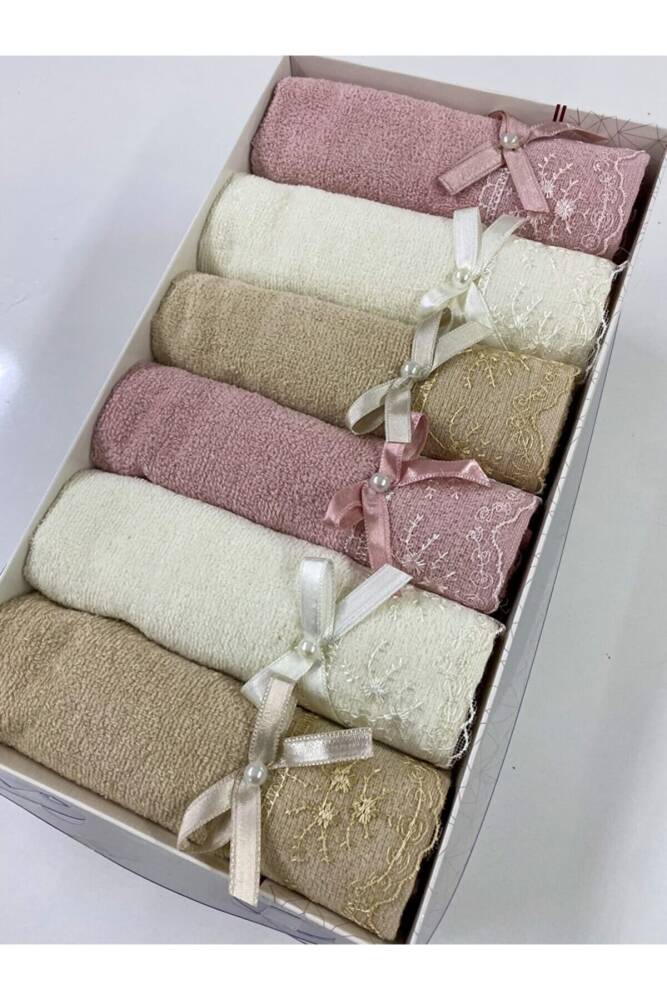 6 ‘lı Kadife Fiyonk Desenli 30x50 Çeyizlik Hediyelik Mutfak Havlu Seti (ASORTİ)