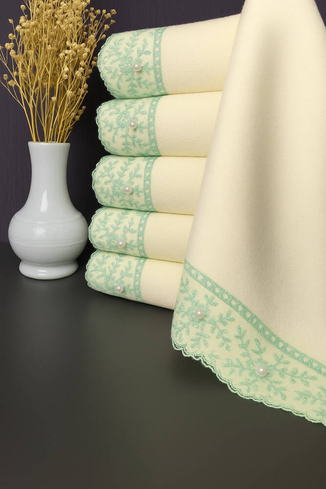 AYHAN HOME 30x59 6'lı %100 Pamuklu Kadife Dantelli Güpürlü Fiyonklu Çeyizlik Mutfak Havlusu Ürün kalitesi: 100% Pamuktur.