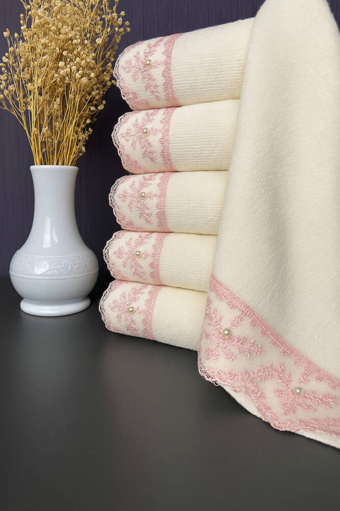 AYHAN HOME 30x59 6'lı %100 Pamuklu Kadife Dantelli Güpürlü Fiyonklu Çeyizlik Mutfak Havlusu Ürün kalitesi: 100% Pamuktur.