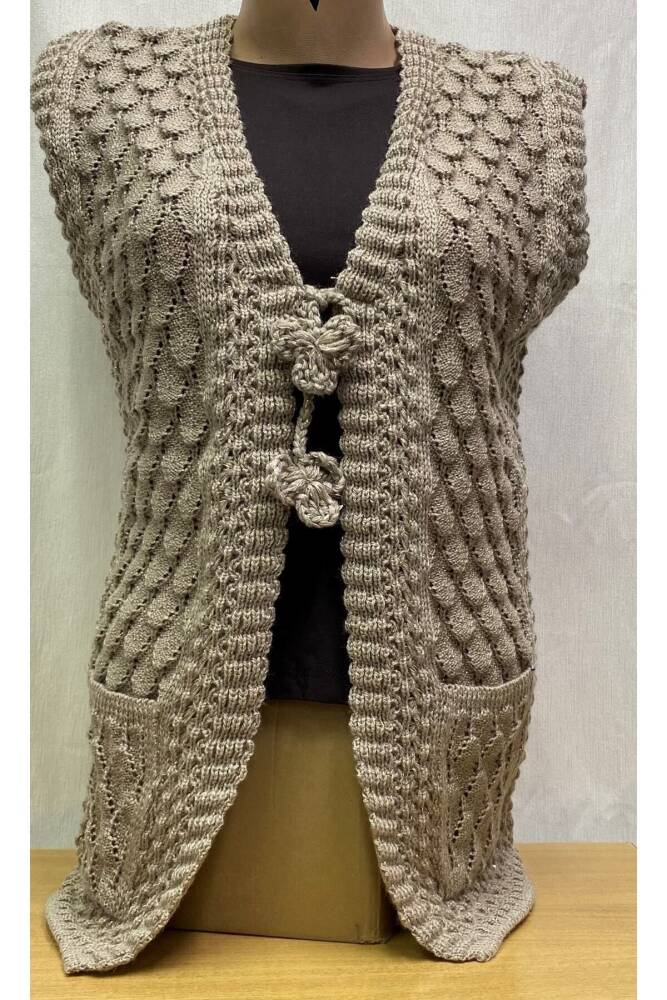 Angora Simli Örgü Kadın Yeleği (BEJ) - 1Angora Simli Örgü Kadın Yeleği (BEJ) - 2