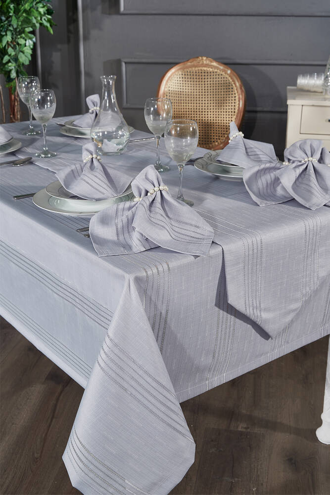 Colver Şantuk Kumaş Cizgili Desen Lüks Masa Örtüsü (GRİ)