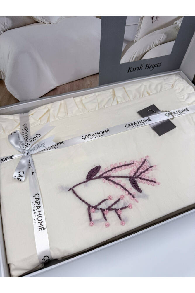 Gardenia El İşi Nakışlı %100 Pamuklu Çift Kişilik Nevresim Takımı (Ekru)
