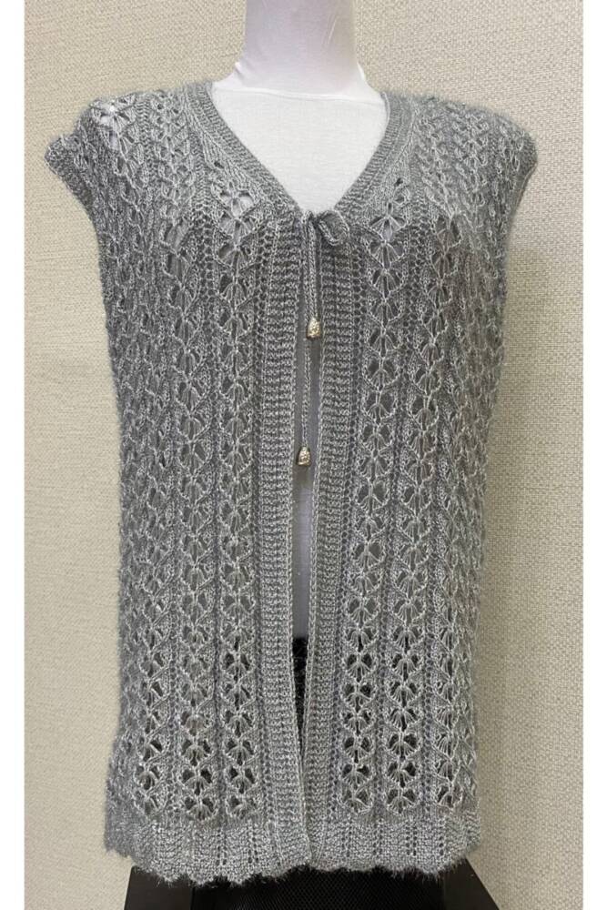 Kadın Gri Kalp Örgü Simli Kristal Yeleği (GRİ) - 1Kadın Gri Kalp Örgü Simli Kristal Yeleği (GRİ) - 2