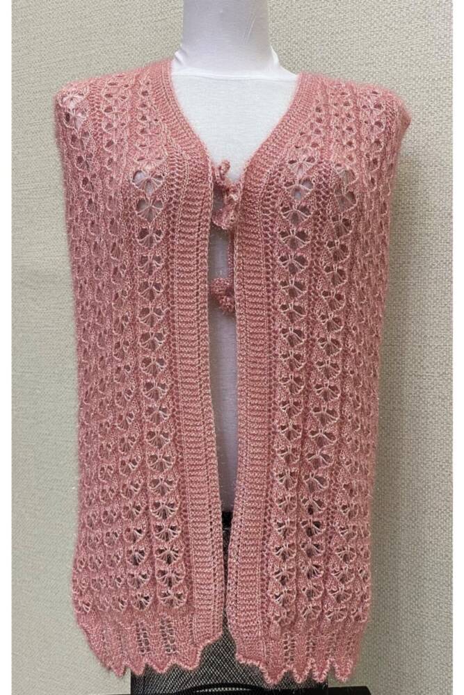 Kalp Örgü Simli Kristal Çeyizlik Kadın Yeleği (PEMBE) - 1Kalp Örgü Simli Kristal Çeyizlik Kadın Yeleği (PEMBE) - 2