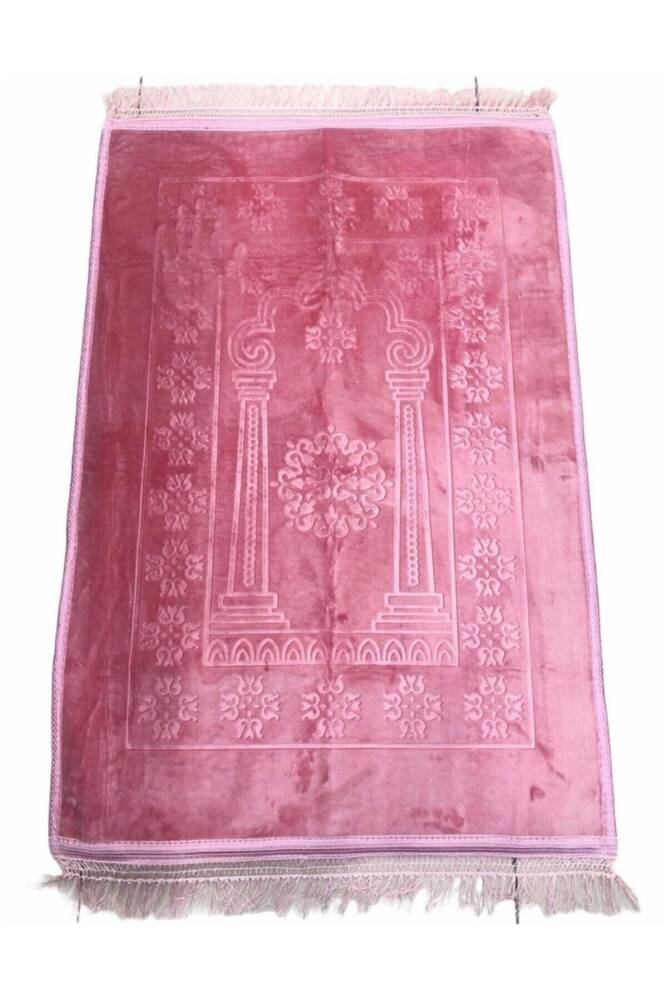 Lüks Kalın Yumuşak Peluş Seccade Kaymaz Taban Özellikli Çantalı (Pembe)