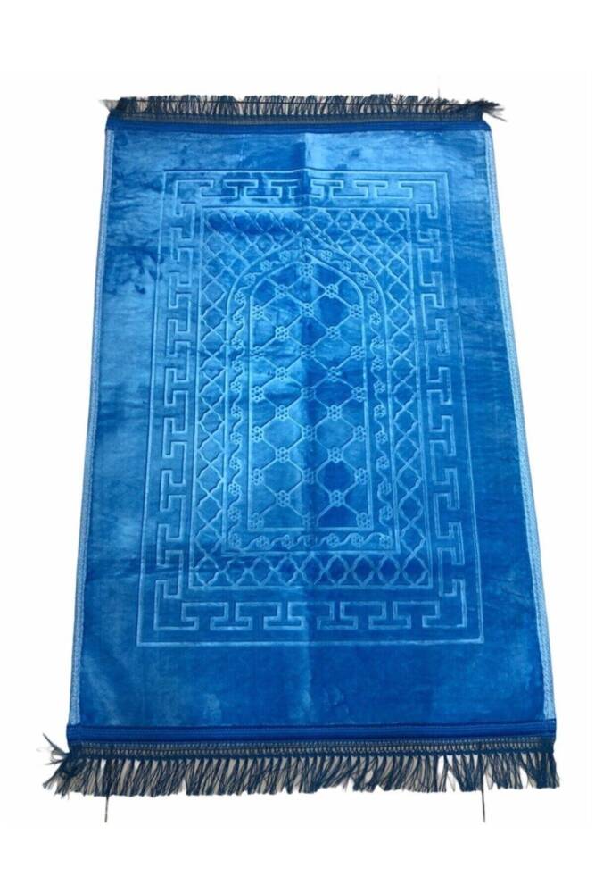 Lüks Kalın Yumuşak Peluş Seccade Kaymaz Taban Özellikli Çantalı (Mavi)
