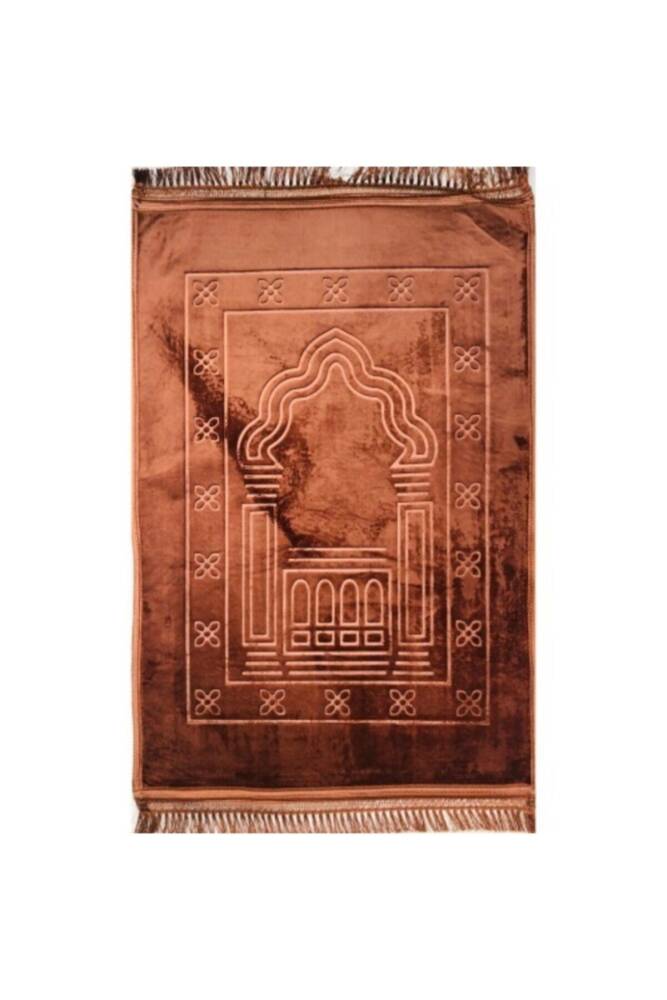 Lüks Kalın Yumuşak Peluş Seccade Kaymaz Taban Özellikli Çantalı (AÇIK KAHVE)