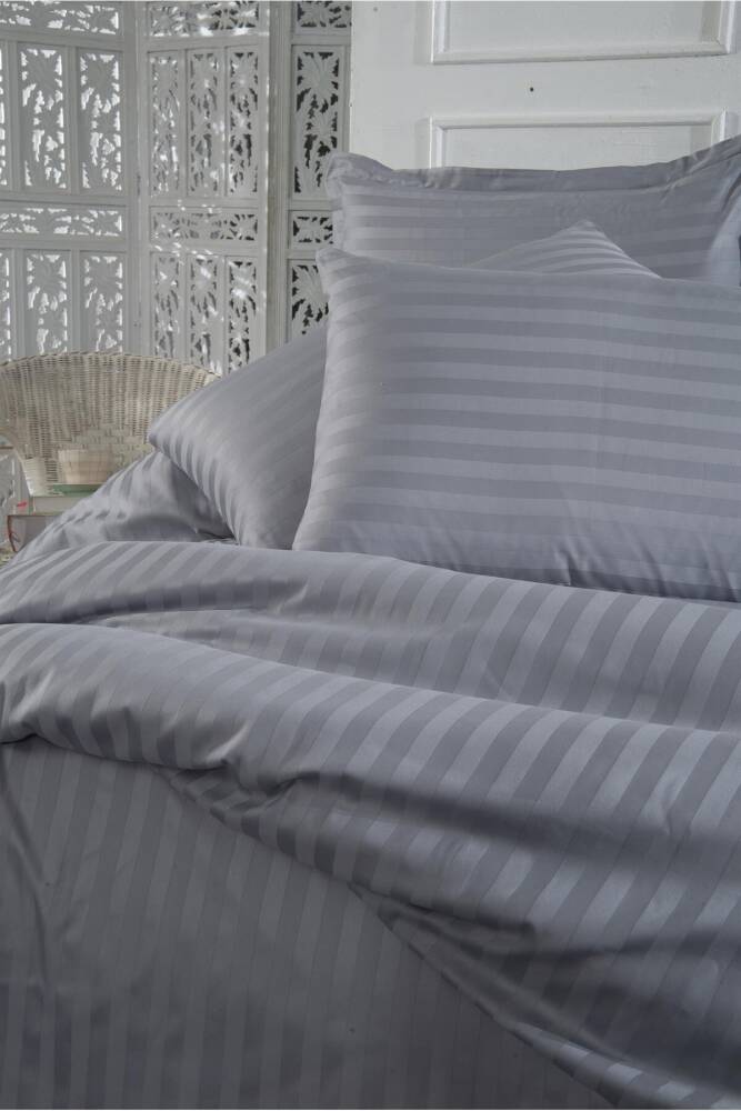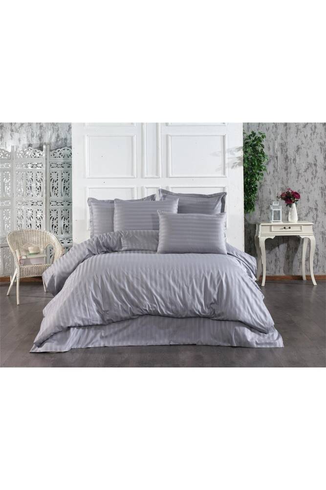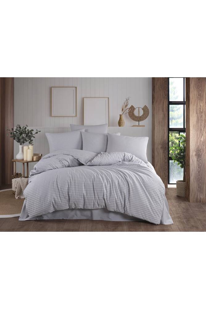 Naturel Stripe Pamuk Çift Kişilik Nevresim Takımı (Gri)