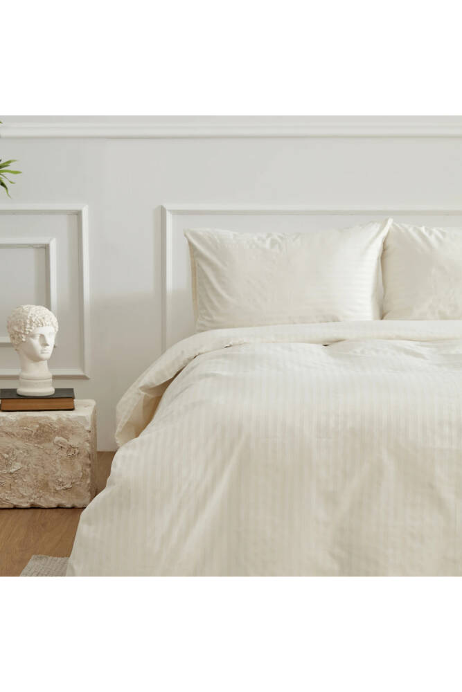 Naturel Stripe Pamuk Çift Kişilik Nevresim Takımı (Ekru)