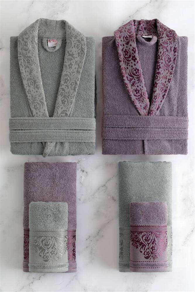 Kutu İçeriği: 2 Adet Bornoz, 2 Adet Baş Havlusu, 2 Adet Banyo Havlusu Kutu Özelliği: Pencereli Sandık Karton Kutu Ürün Boyutu: Kadın Bornoz: M, Erkek Bornoz: L, El Havlusu: 50x90 cm, Duş Havlusu: 90x150 Havlu Malzeme Bilgisi: %100 Pamuk Bakım Bilgisi: 30 derece makinede yıkanabilir.