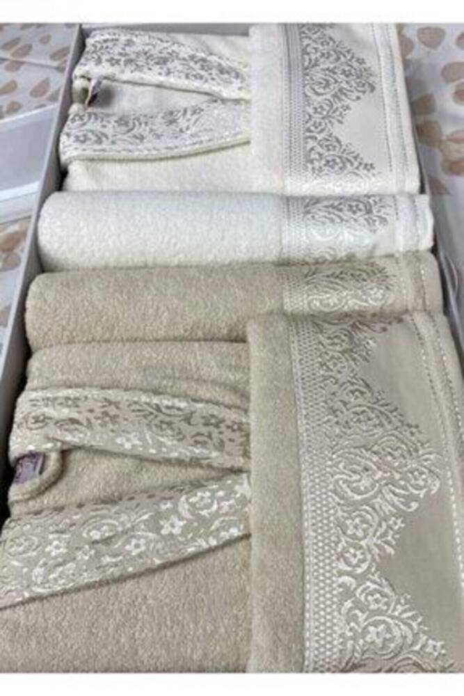 Pamuklu Jakarlı Aile Bornoz Seti (krem cappucino)