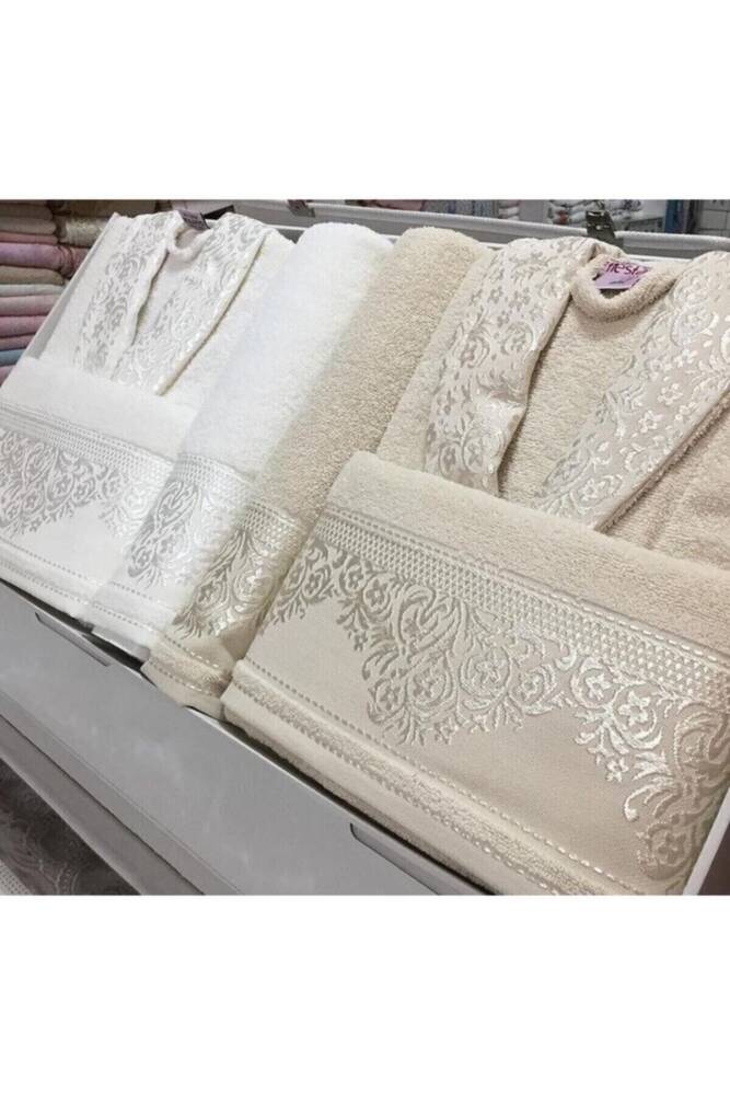 Unisex Bornoz Takımı (beyaz-krem)