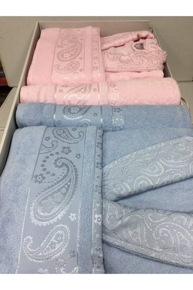 Paket içerisinde [ 2 adet baş havlu- 2 adet banyo havlu- 2 adet bornoz ]bulunmaktadır.